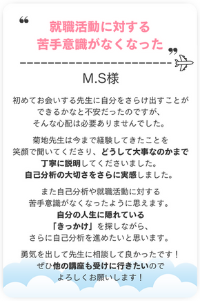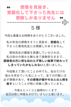例えば第一希望がJALならば、自分のどの部分とJALがマッチングするのかを具体的にお伝えすることもできます。