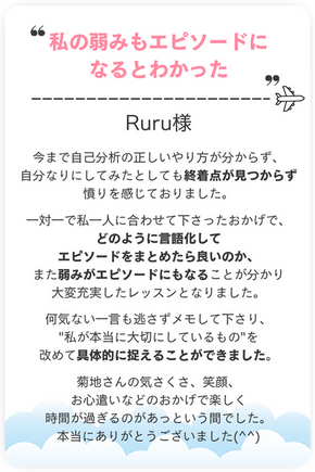 具体的に書いてくださることで受講生の背景を事前にしっかりと汲むことができ、当日90分が有意義な時間となります。
